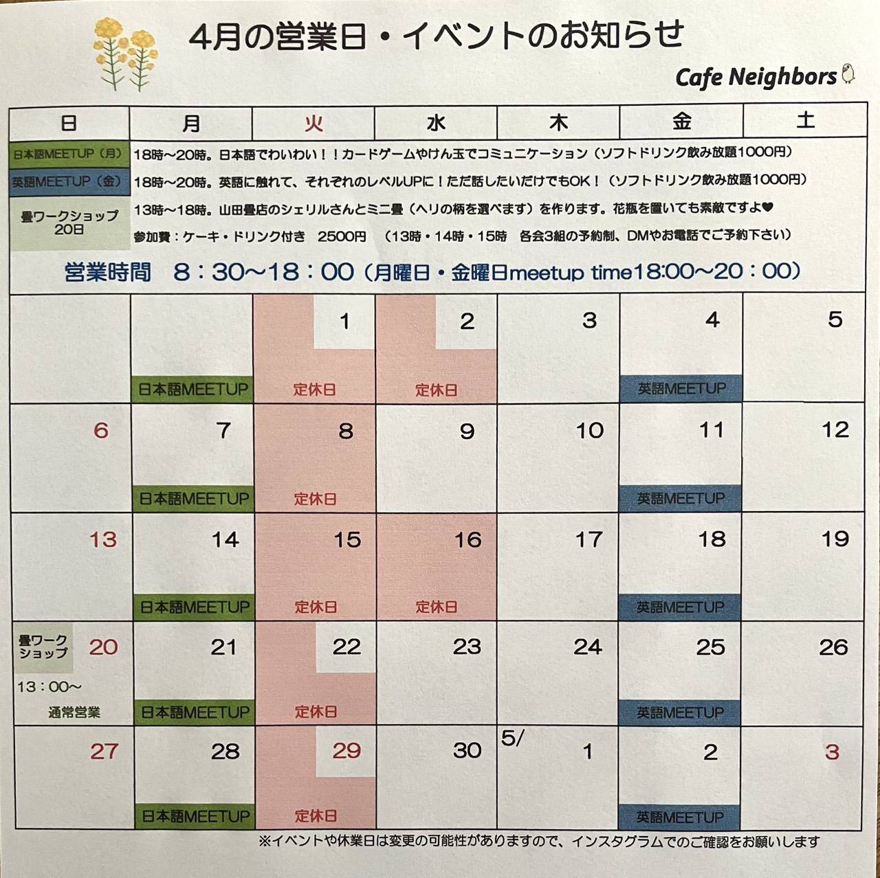 4月のスケジュールです
